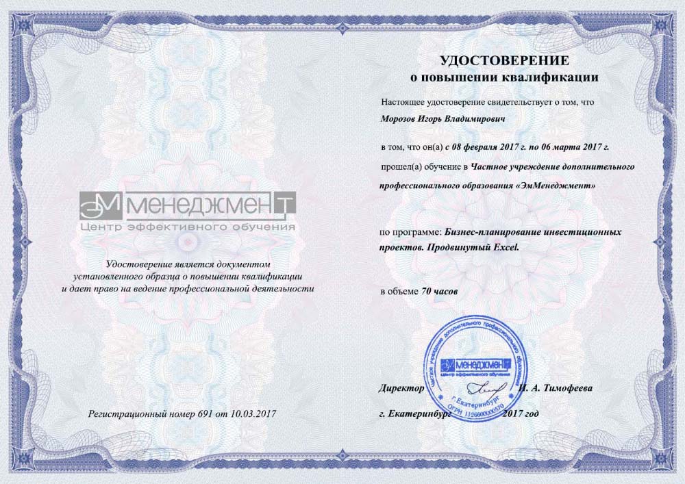 Центр обучения ЭмМенеджмент аккредитован министерством Образования и имеет лицензию, позволяющую по окончанию курса выдавать удостоверение о повышении квалификации. Это официальный документ, имеющий силу не только в Кунгуре, но и на всей территории России, а также за ее пределами. Такой документ – хорошее дополнение к резюме и конкурентное преимущество при трудоустройстве.