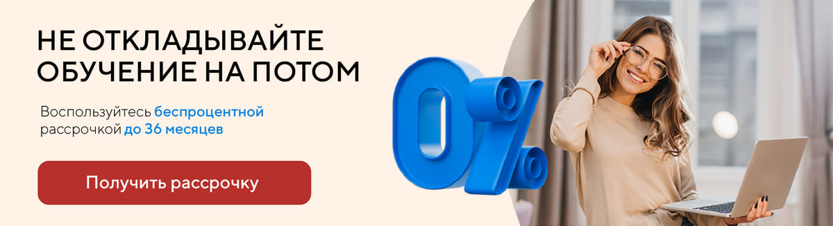Доступна поэтапная оплата стоимости программы, без дополнительных затрат и процентов – рассрочка оформляется по договору, окончательная стоимость курса не меняется и дополнительных трат не требует. |